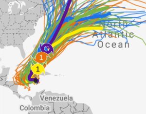 Various computer model simulations for Tropical Cyclone Melissa as seen by Google’s Weather Lab. Melissa is expected to strengthen into a hurricane the next couple of days and potentially produce devastating impacts for parts of the Caribbean. Mid to longer period SE swell is possible for WB around the back half of next week. There are differences in the models on when this storm will emerge into the SW North Atlantic, however, which will impact the swell/surf forecast.