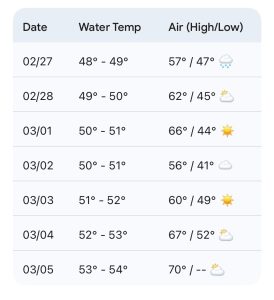 Issued 6:45 AM Feb 27. Note: Forecast based on early Friday morning data. While broad patterns usually hold, forecast shifts occur—verify conditions before heading out. By Mark Willis