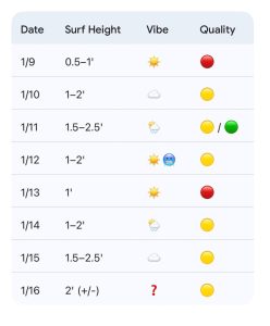 WB Surf Forecast Table